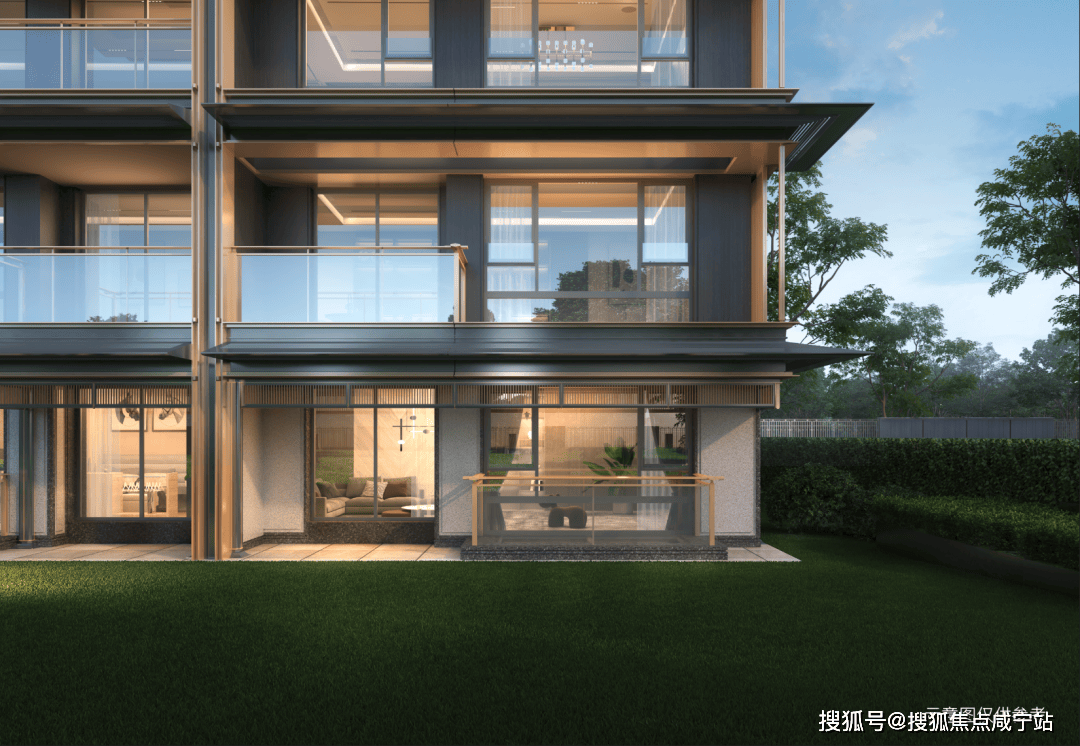 次是铜建大门+古铜铝板立面+三玻两腔的玻璃