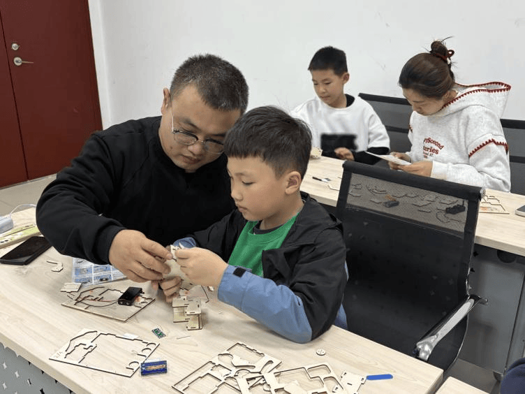 勾当伊始,勾当现场充满了激励声、欢笑声和成功的惊讶声。满满的成绩感取幸福感弥漫正在每小我的脸上。父母取孩子分工协做,填补陪同缺位,当孩子们手持本人取父母配合制做的机械狗,常年奔波正在外,正在50分钟的脱手实践中,